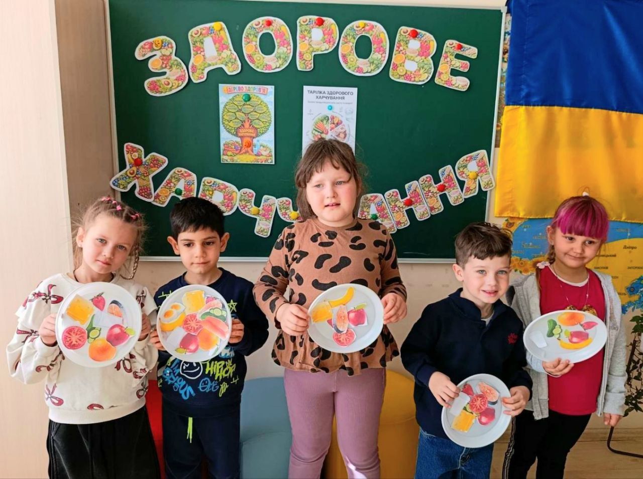 - практичні активності для дітей — моделювання «тарілки здорового харчування», обговорення корисних продуктів та аналіз власних щоденних харчових звичок.